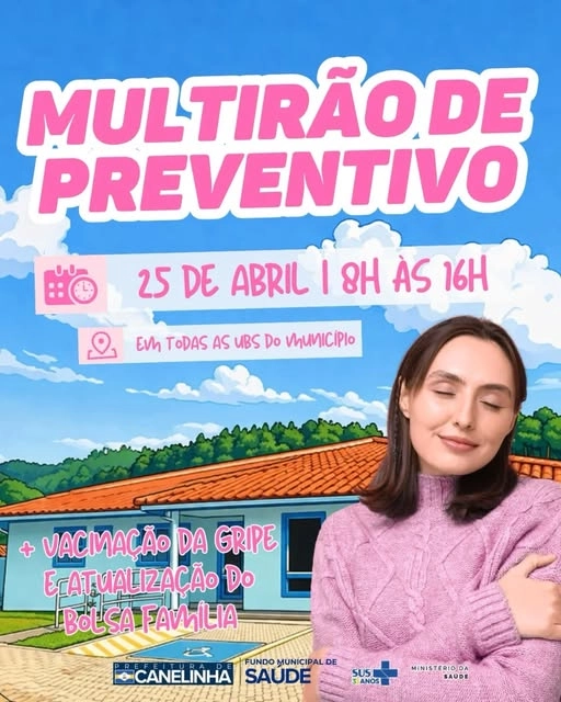 A Secretaria de Saúde de Canelinha realiza no dia 25 de abril, das 8h às 16h, um mutirão em todas as Unidades Básicas de Saúde (UBSs) do município, voltado à saúde da mulher.