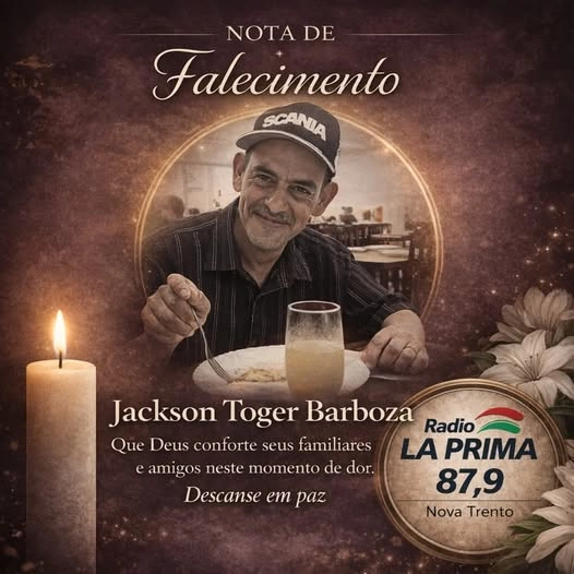 É com pesar que a Sc funerária Nova Trento informa o falecimento do inesquecível e saudoso Jackson Roger Barboza , falecido aos