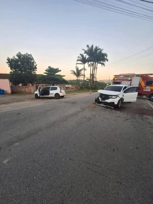 A ocorrência foi atendida por volta das 5h40, no km 21,350, e envolveu uma caminhonete Fiat Strada, com placas de Laranjeiras do Sul (PR), e um automóvel Renault Clio, de Gaspar.